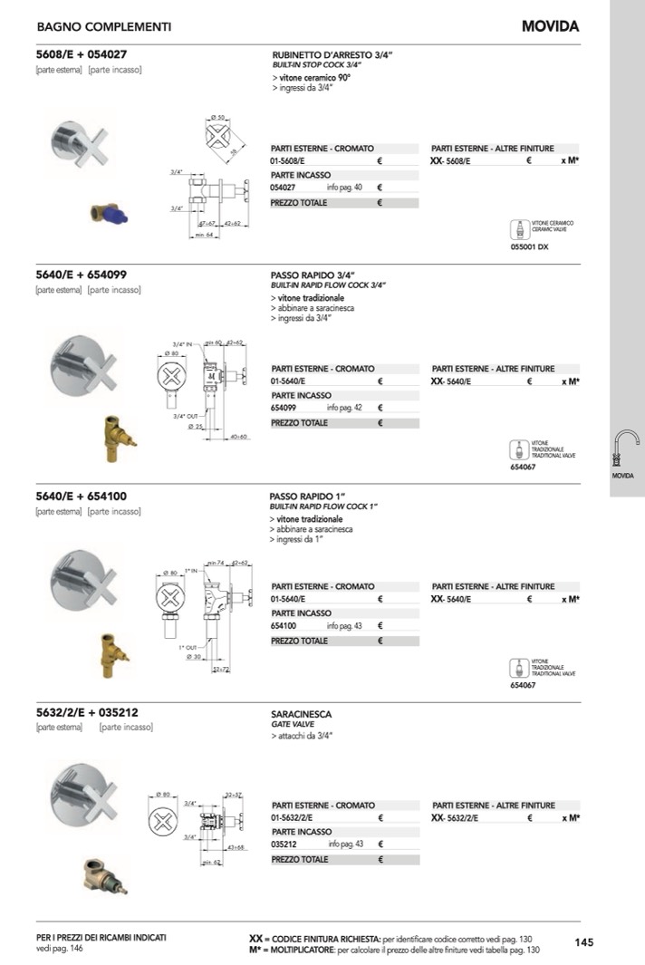 : per calcolare il prezzo delle altre finiture vedi tabella pag. 130