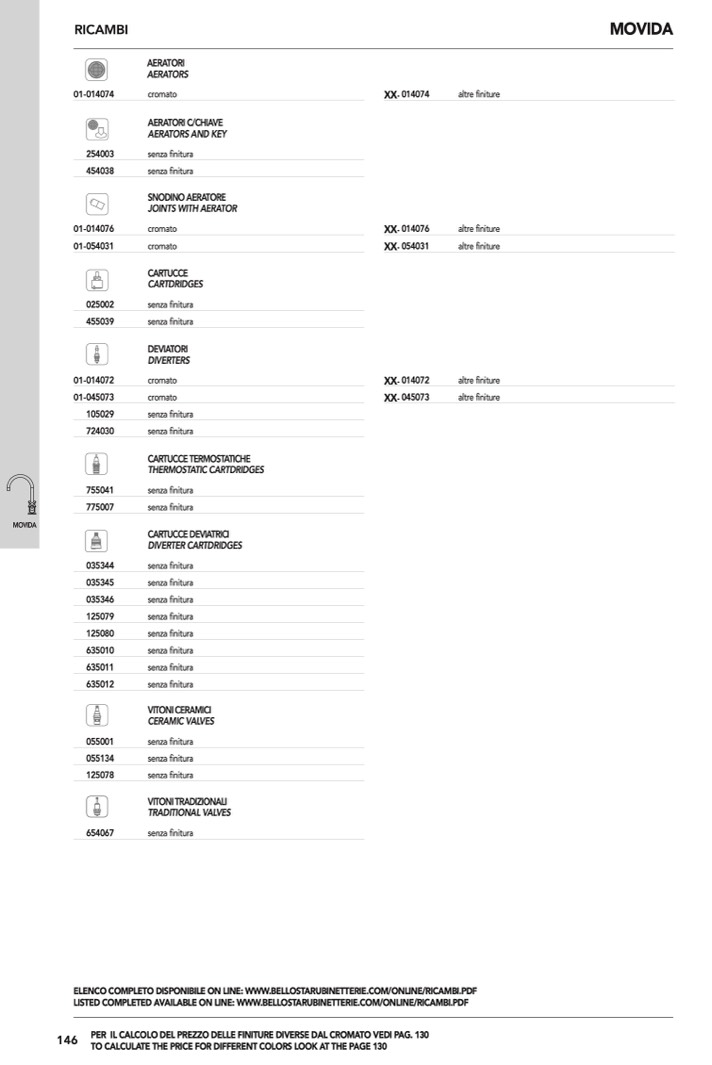 ELENCO COMPLETO DISPONIBILE ON LINE: WWW.BELLOSTARUBINETTERIE.COM/ONLINE/RICAMBI.PDF