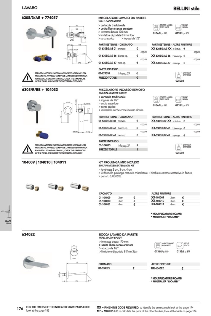 : to calculate the price of the other finishes, look at the table on page 174