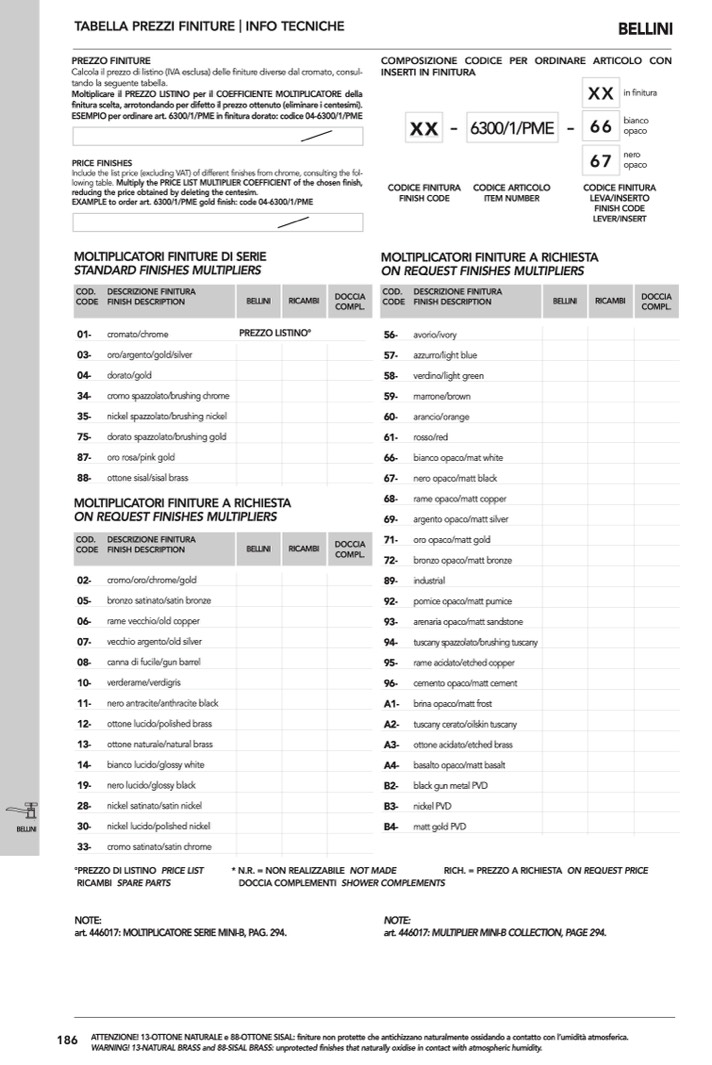 lowing table. Multiply the PRICE LIST MULTIPLIER COEFFICIENT of the chosen finish,
