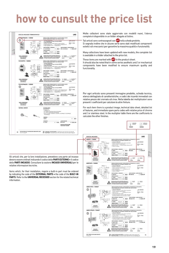 : per calcolare il prezzo delle altre finiture vedi tabella pag. 68