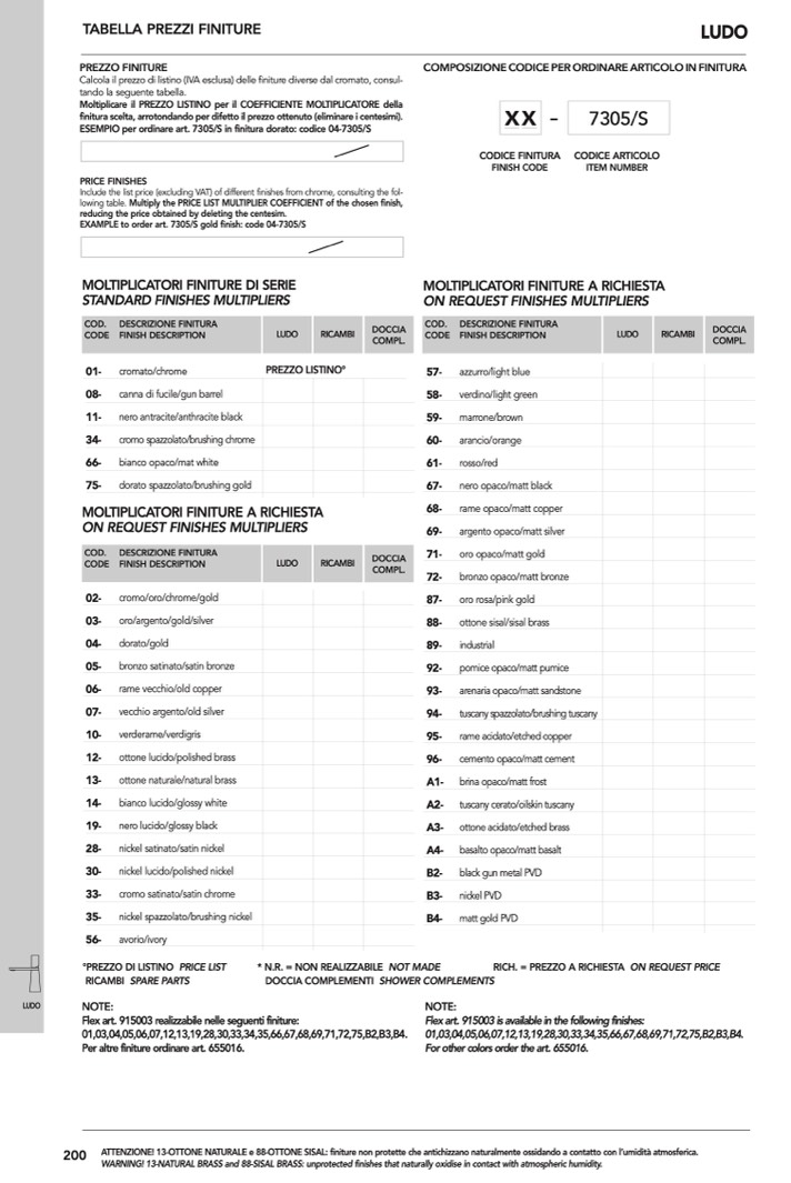 lowing table. Multiply the PRICE LIST MULTIPLIER COEFFICIENT of the chosen finish,