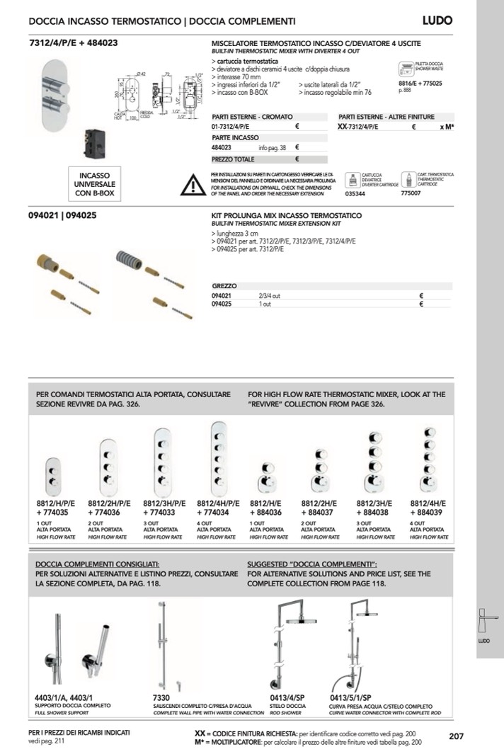 BUILT-IN THERMOSTATIC MIXER WITH DIVERTER 4 OUT