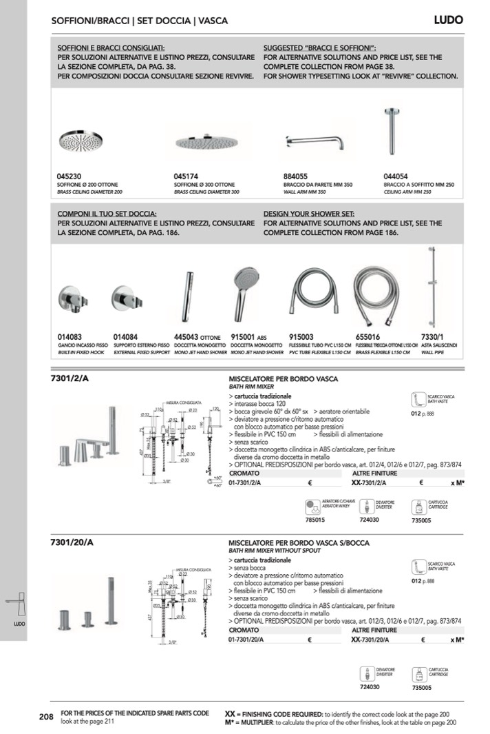 > OPTIONAL PREDISPOSIZIONI per bordo vasca, art. 012/3, 012/6 e 012/7, pag. 873/874