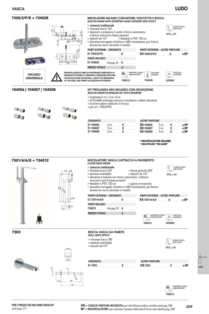 : per calcolare il prezzo delle altre finiture vedi tabella pag. 200