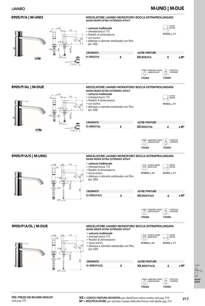 : per calcolare il prezzo delle altre finiture vedi tabella pag. 214