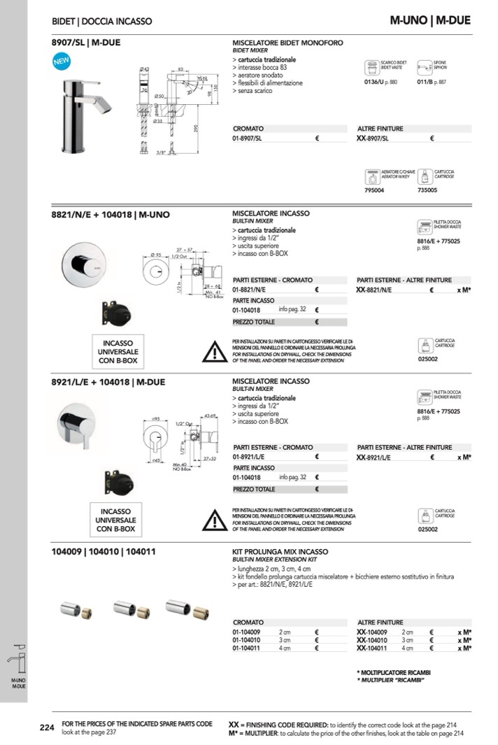 > kit fondello prolunga cartuccia miscelatore + bicchiere esterno sostitutivo in finitura