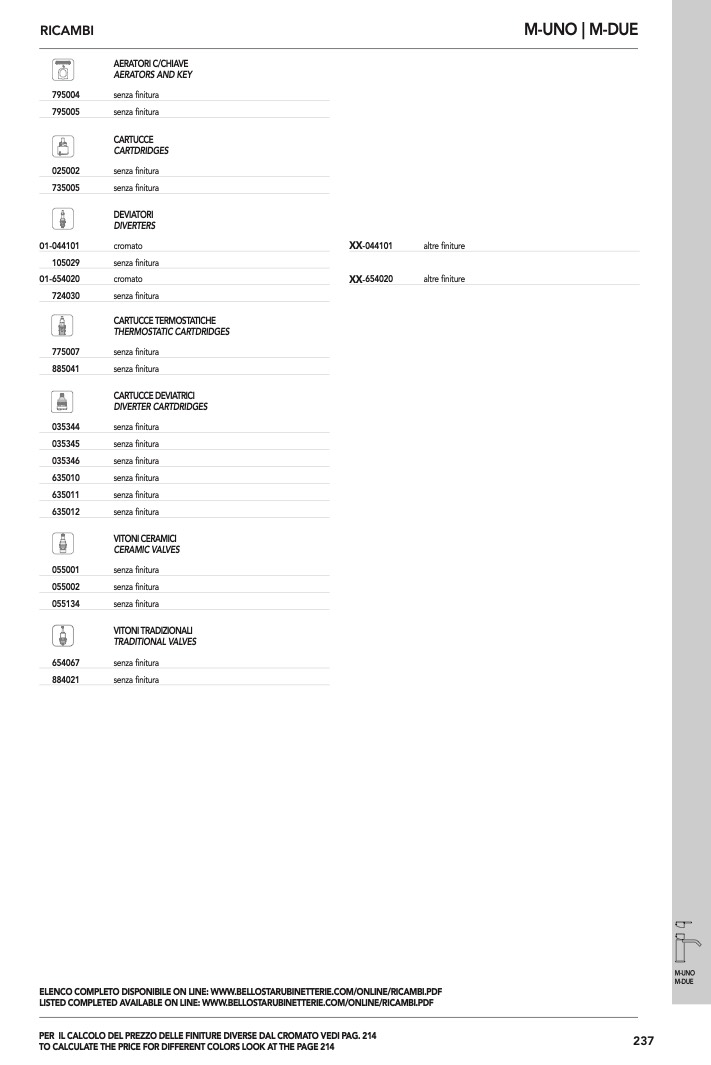 ELENCO COMPLETO DISPONIBILE ON LINE: WWW.BELLOSTARUBINETTERIE.COM/ONLINE/RICAMBI.PDF