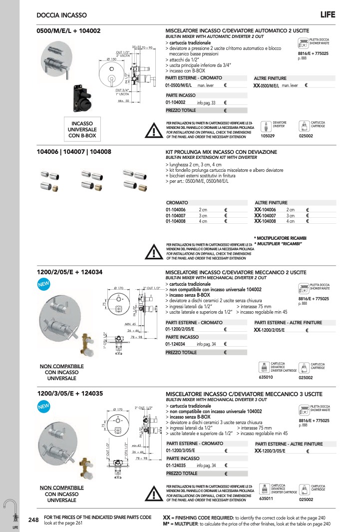 > per art.: 0500/M/E, 0500/M/E/L