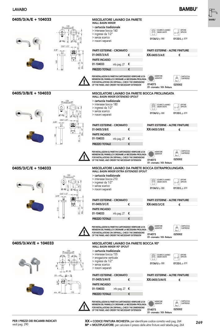 : per calcolare il prezzo delle altre finiture vedi tabella pag. 264