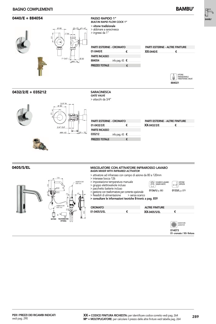 : per calcolare il prezzo delle altre finiture vedi tabella pag. 264