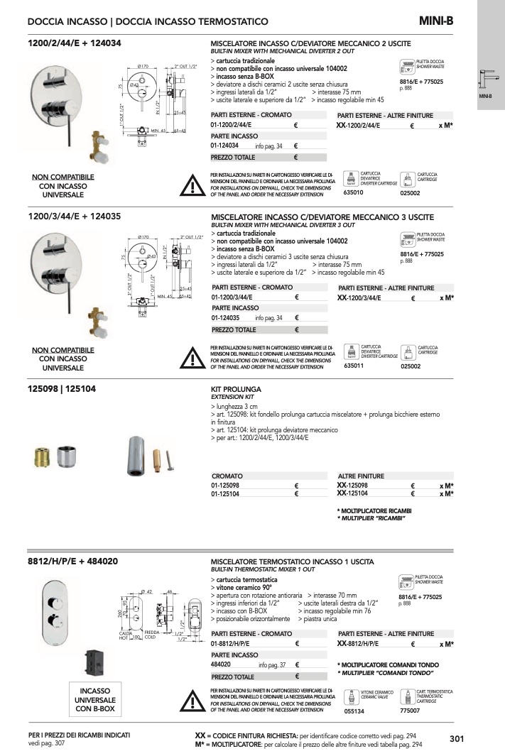 > art. 125098: kit fondello prolunga cartuccia miscelatore + prolunga bicchiere esterno