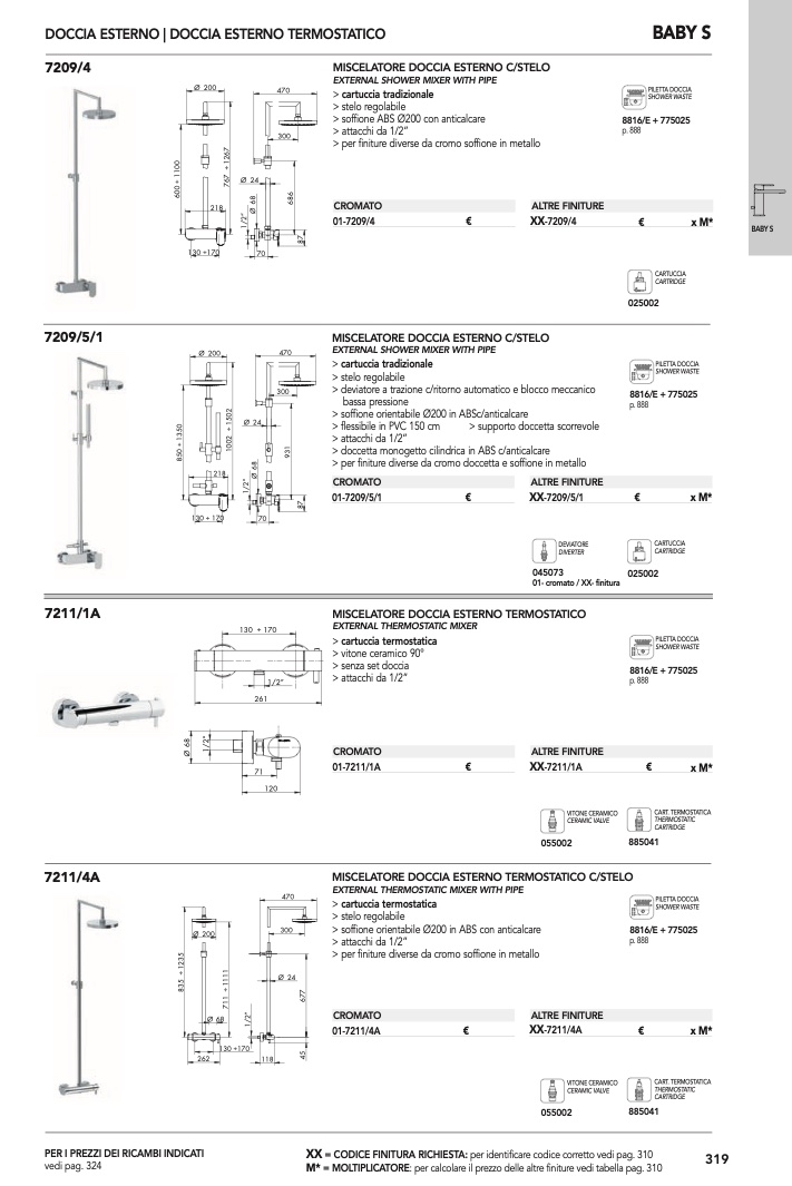 : per calcolare il prezzo delle altre finiture vedi tabella pag. 310