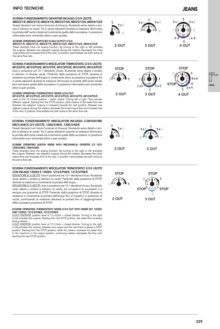 SCHEME OPERATING THERMOSTATIC MIXER 2/3/4 OUT:
