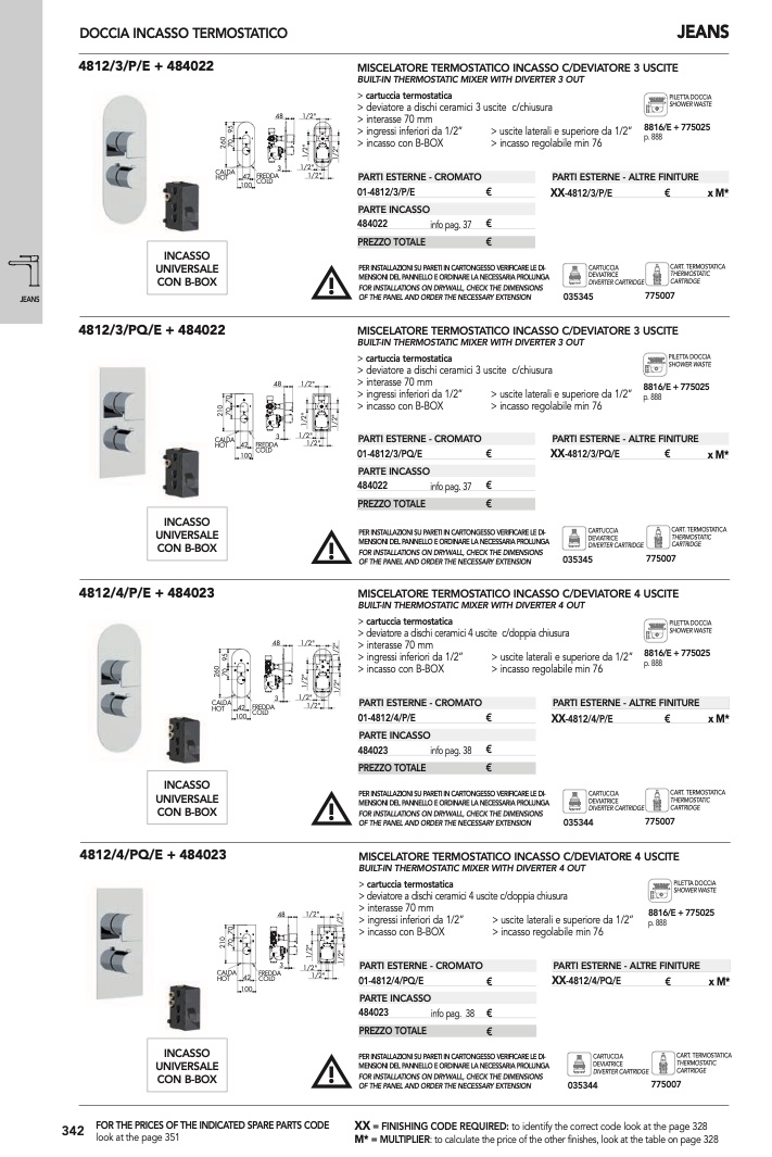 BUILT-IN THERMOSTATIC MIXER WITH DIVERTER 4 OUT