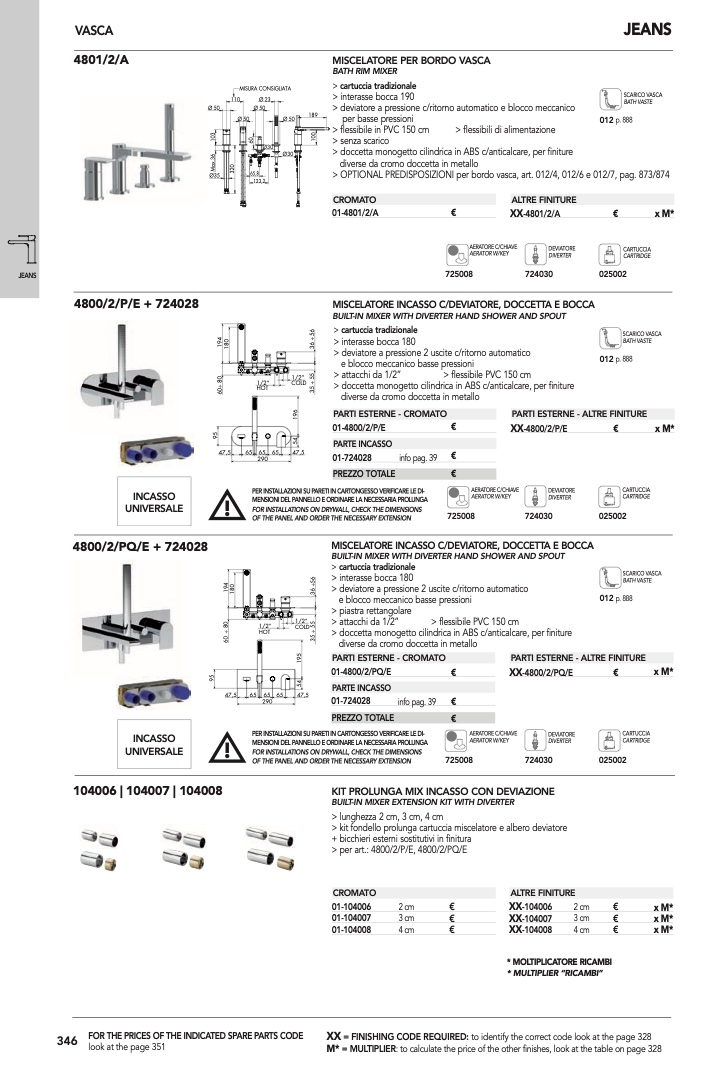 > OPTIONAL PREDISPOSIZIONI per bordo vasca, art. 012/4, 012/6 e 012/7, pag. 873/874