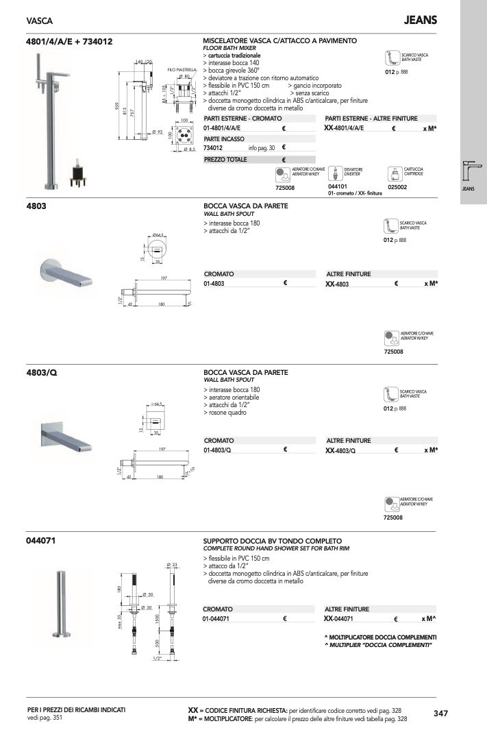 : per calcolare il prezzo delle altre finiture vedi tabella pag. 328