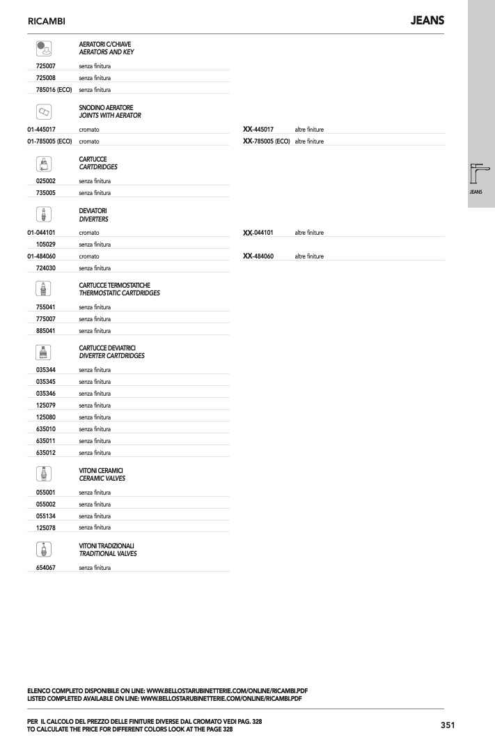 ELENCO COMPLETO DISPONIBILE ON LINE: WWW.BELLOSTARUBINETTERIE.COM/ONLINE/RICAMBI.PDF