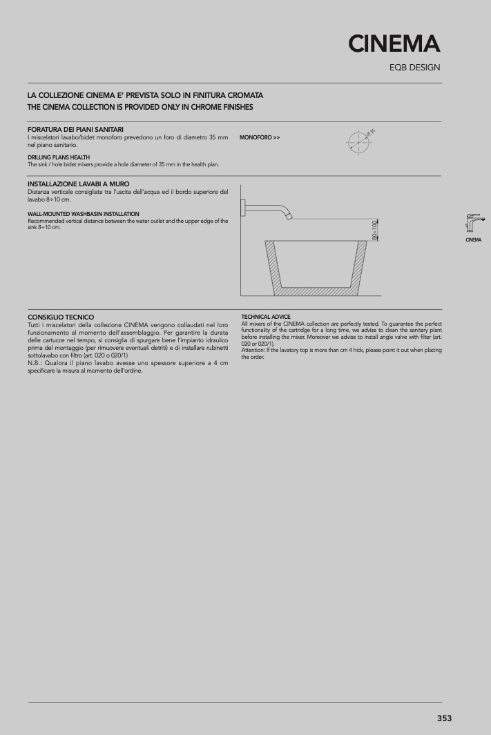Tutti i miscelatori della collezione CINEMA vengono collaudati nel loro
