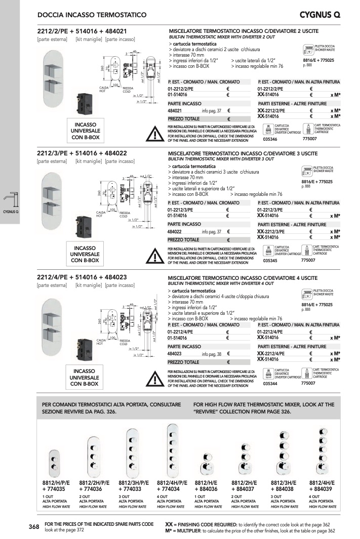 BUILT-IN THERMOSTATIC MIXER WITH DIVERTER 4 OUT