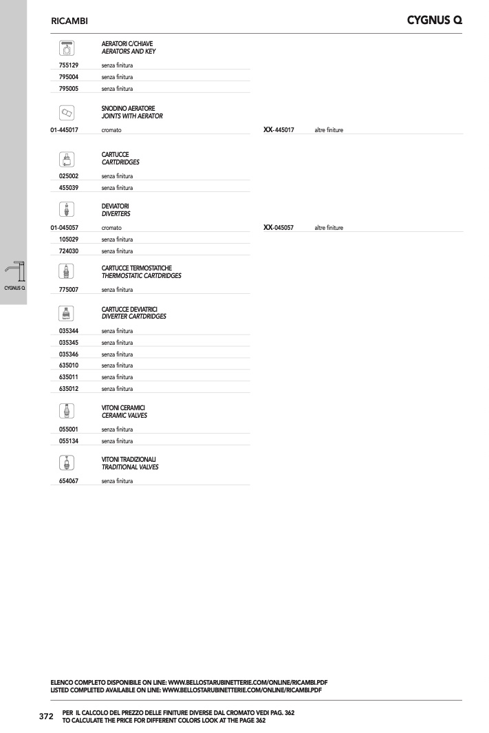 ELENCO COMPLETO DISPONIBILE ON LINE: WWW.BELLOSTARUBINETTERIE.COM/ONLINE/RICAMBI.PDF