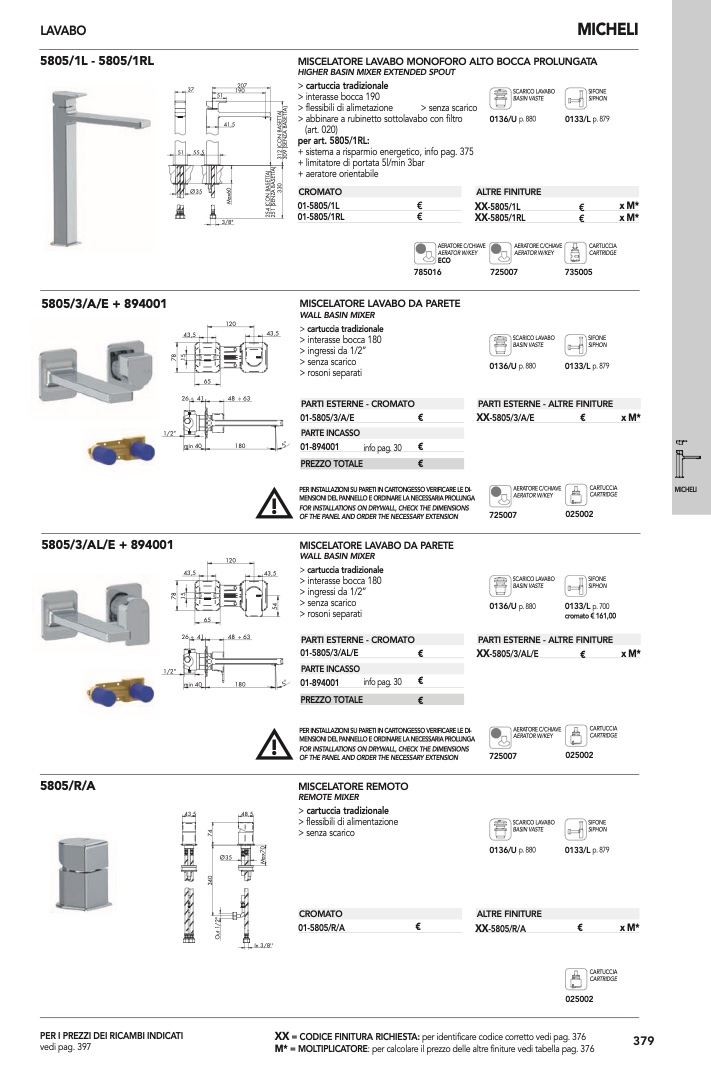: per calcolare il prezzo delle altre finiture vedi tabella pag. 376