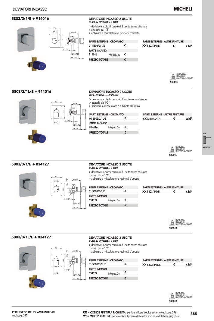 : per calcolare il prezzo delle altre finiture vedi tabella pag. 376