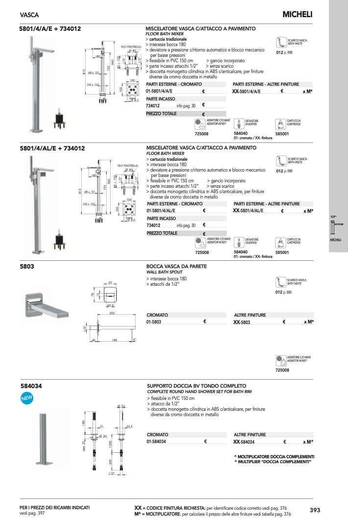 : per calcolare il prezzo delle altre finiture vedi tabella pag. 376