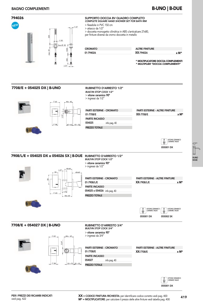 : per calcolare il prezzo delle altre finiture vedi tabella pag. 400