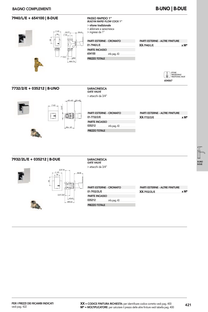 : per calcolare il prezzo delle altre finiture vedi tabella pag. 400