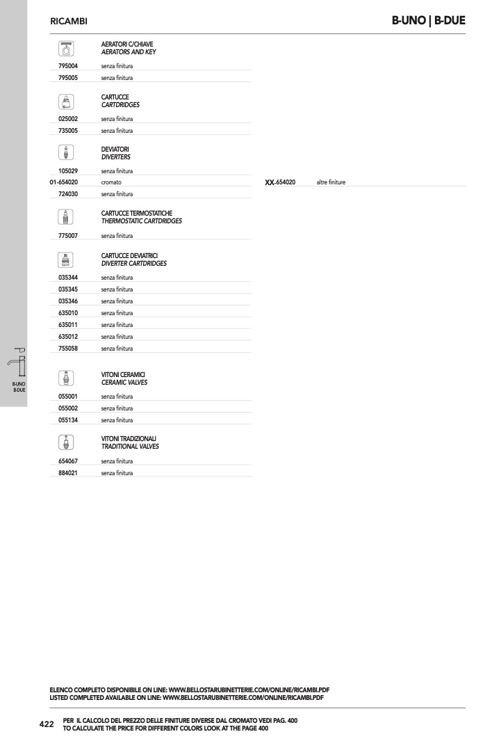 ELENCO COMPLETO DISPONIBILE ON LINE: WWW.BELLOSTARUBINETTERIE.COM/ONLINE/RICAMBI.PDF