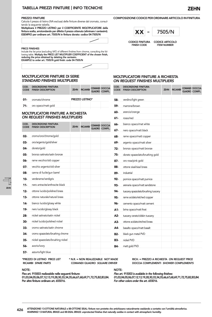 lowing table. Multiply the PRICE LIST MULTIPLIER COEFFICIENT of the chosen finish,