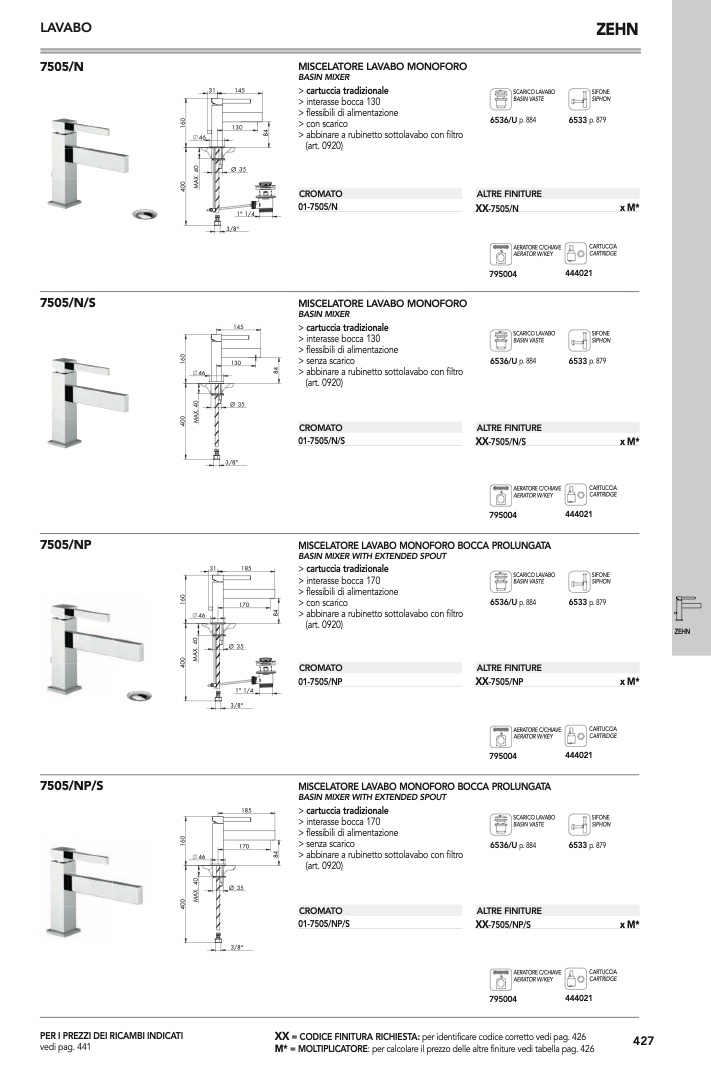 : per calcolare il prezzo delle altre finiture vedi tabella pag. 426