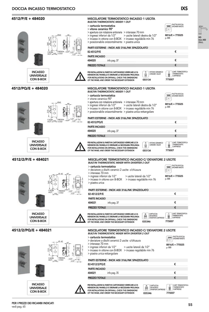 BUILT-IN THERMOSTATIC MIXER WITH DIVERTER 2 OUT