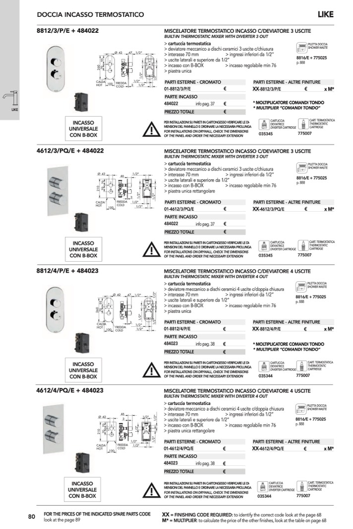 BUILT-IN THERMOSTATIC MIXER WITH DIVERTER 4 OUT