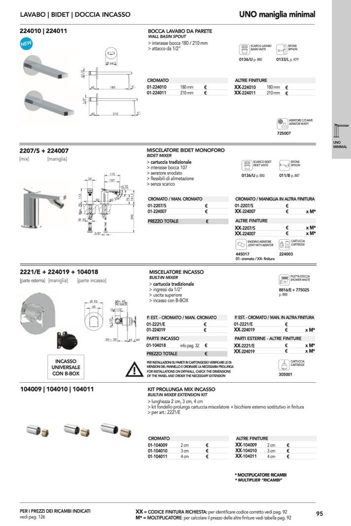 : per calcolare il prezzo delle altre finiture vedi tabella pag. 92