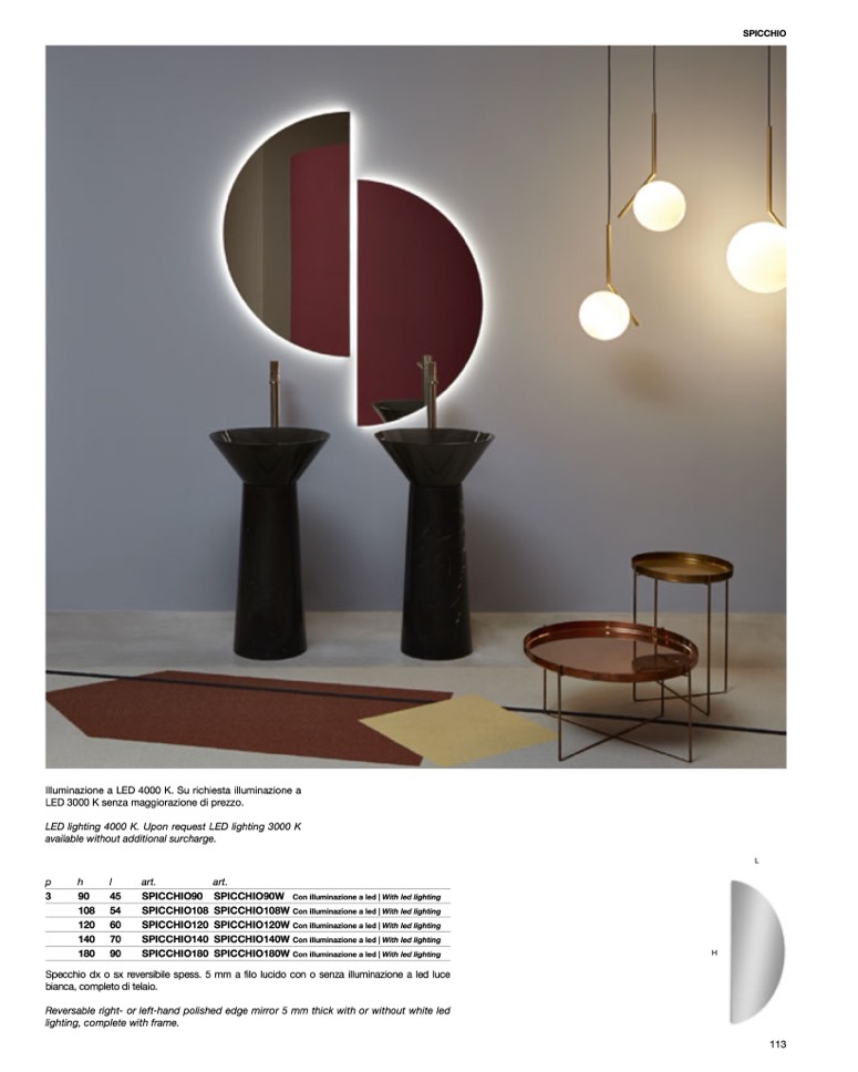 Specchio dx o sx reversibile spess. 5 mm a filo lucido con o senza illuminazione a led luce