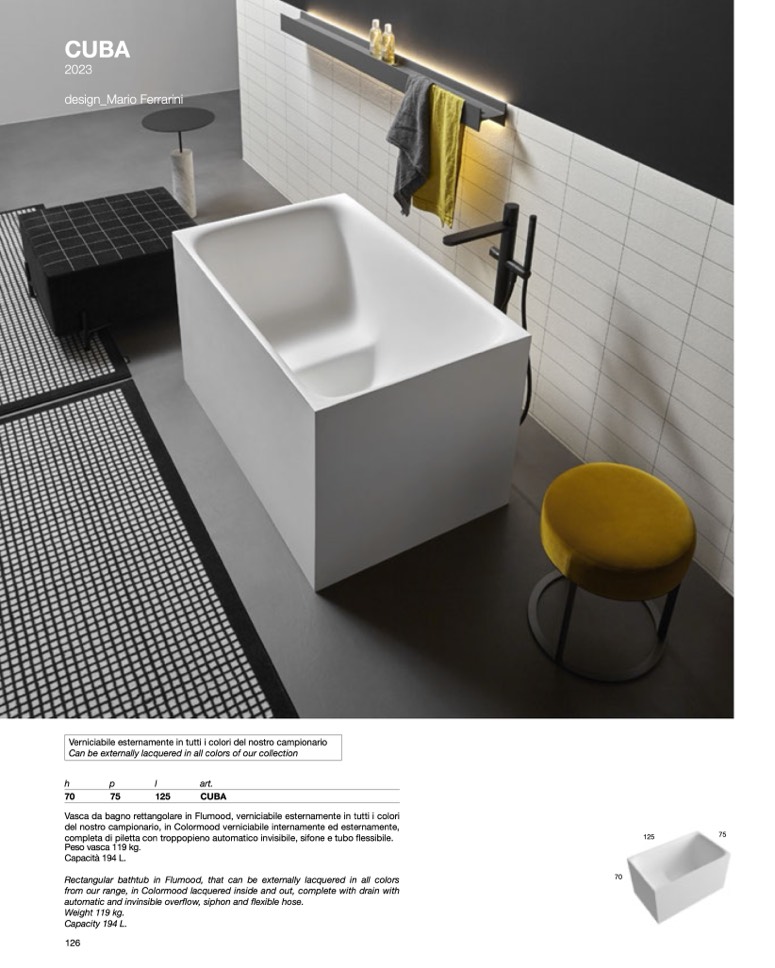 Vasca da bagno rettangolare in Flumood, verniciabile esternamente in tutti i colori