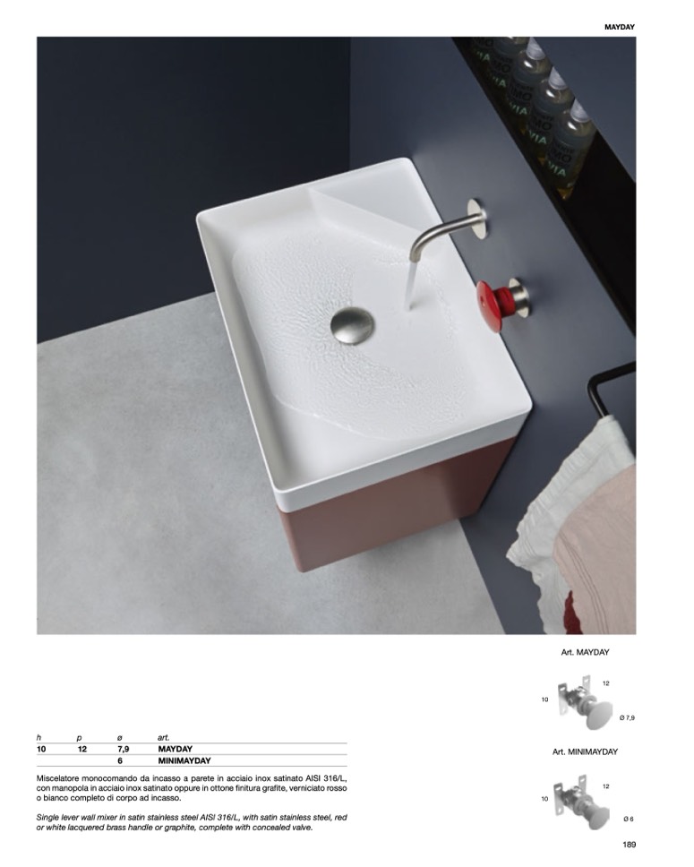 Miscelatore monocomando da incasso a parete in acciaio inox satinato AISI 316/L,