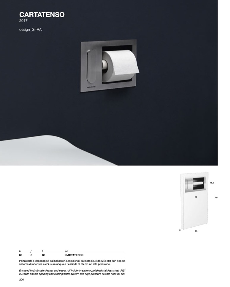 Porta carta e idroscopino da incasso in acciaio inox satinato o lucido AISI 304 con doppio