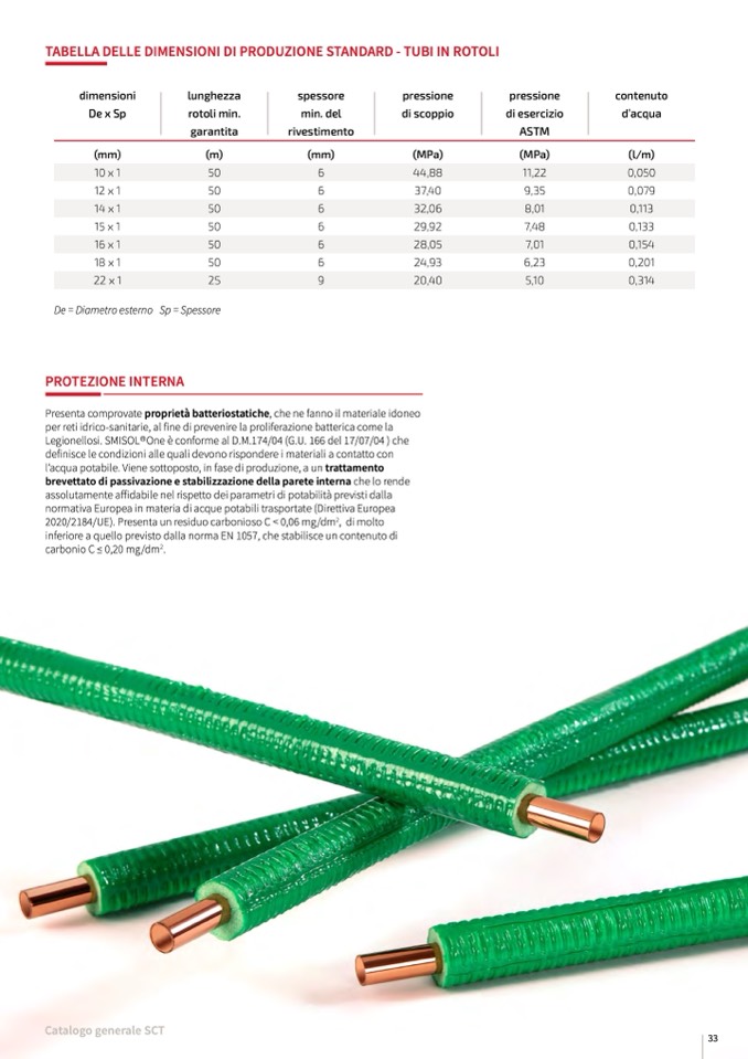 Legionellosi. SMISOL®One è conforme al D.M.174/04 (G.U. 166 del 17/07/04 ) che