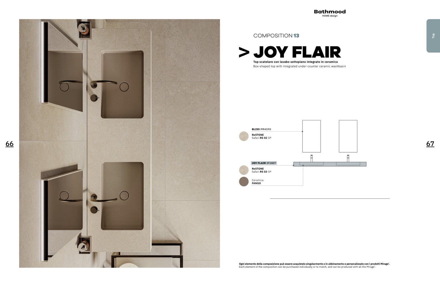 Ogni elemento della composizione può essere acquistato singolarmente o in abbinamento e personalizzato con i prodotti Mirage