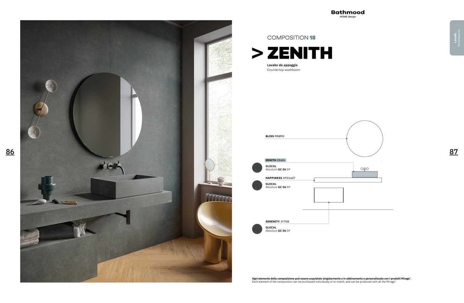 Ogni elemento della composizione può essere acquistato singolarmente o in abbinamento e personalizzato con i prodotti Mirage