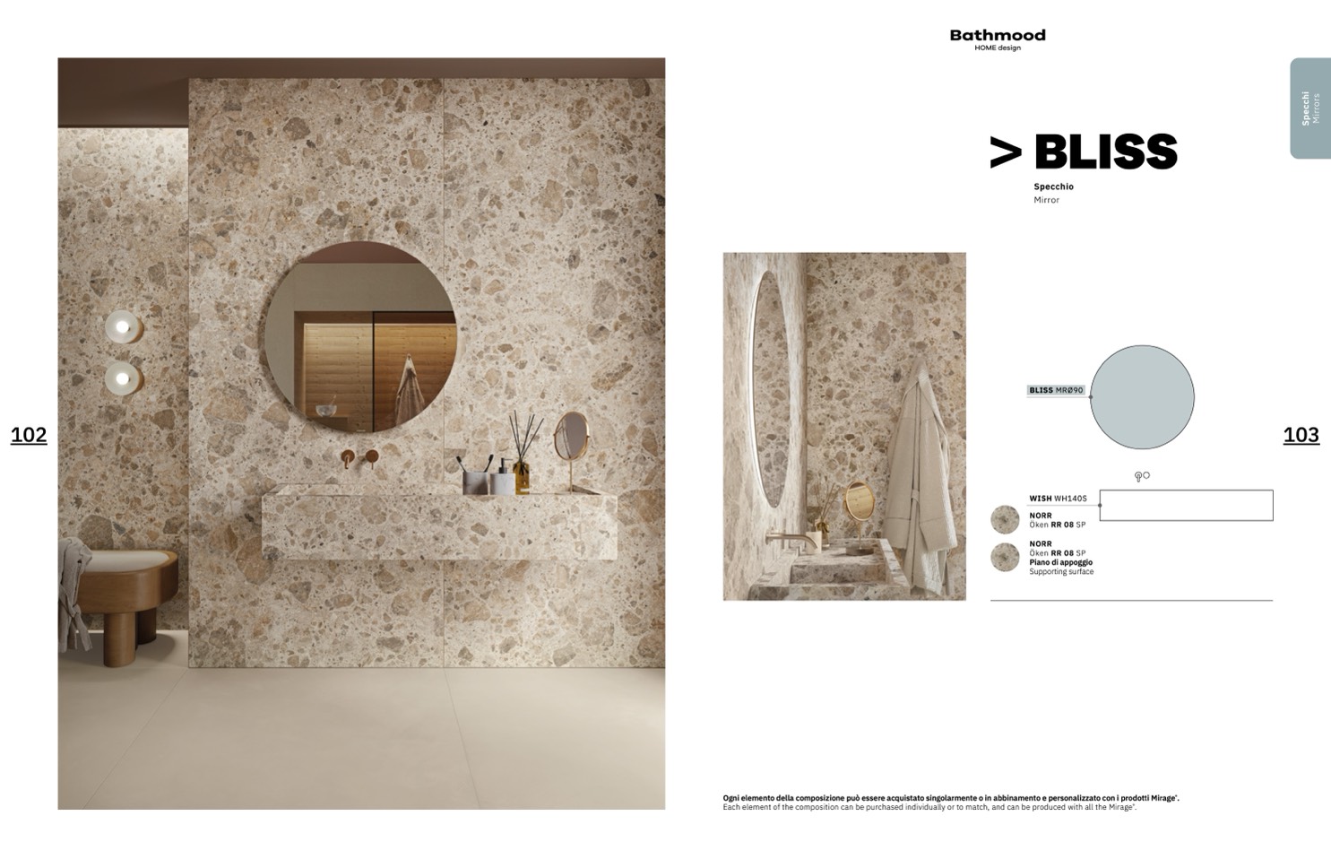 Ogni elemento della composizione può essere acquistato singolarmente o in abbinamento e personalizzato con i prodotti Mirage