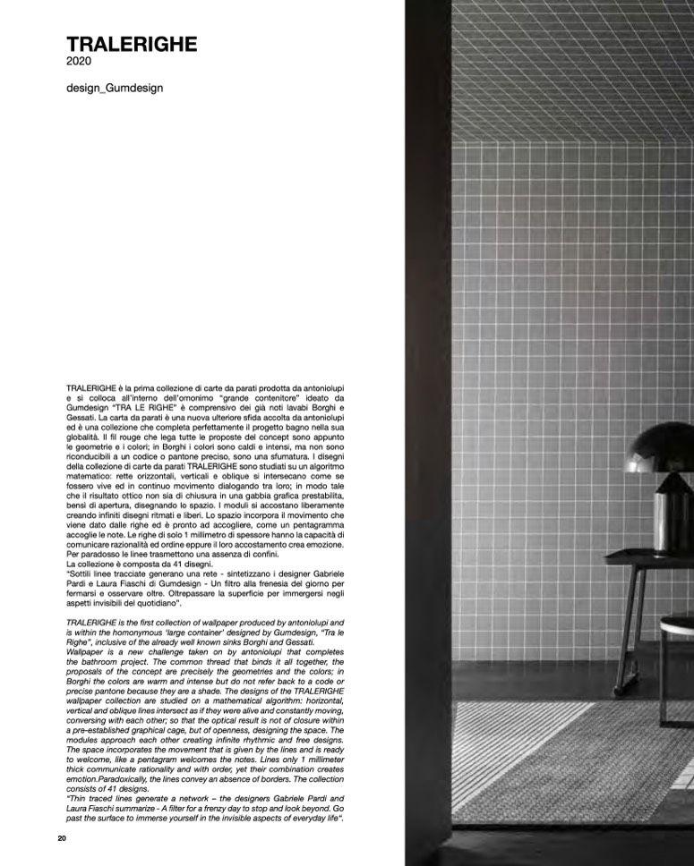 TRALERIGHE is the first collection of wallpaper produced by antoniolupi and