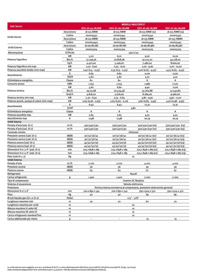 Le unità esterne sono soggette a un eco-contributo R.A.E.E. a carico dell’acquirente (Direttiva 2003/108/CE e Direttiva 2002/96/CE, D.Lgs. 151/2005).