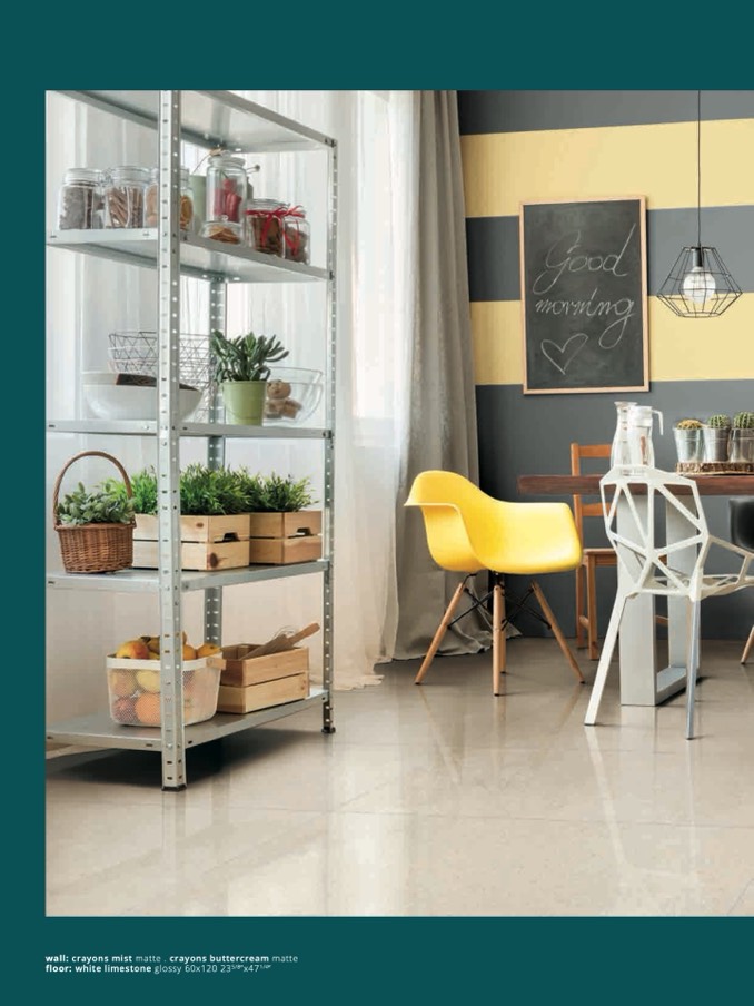 floor: white limestone glossy 60x120 235/8”x471/4”