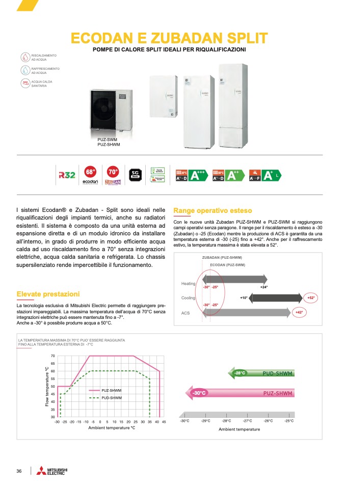 (Zubadan) o -25 (Ecodan) mentre la produzione di ACS è garantita da una
