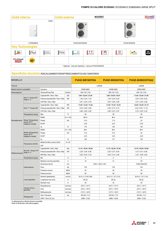 * Optional, 1 solo per Hydrobox, 2 solo per PUHZ-SHW230