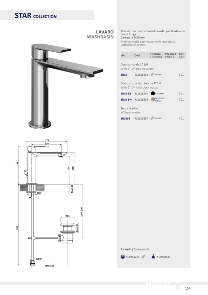 Miscelatore monocomando medio per lavabo con